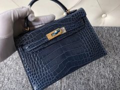 Hermes N7 Blue Tempete 风暴蓝 Kelly mini 2 Ⅱ 方框亮面美洲鳄鱼