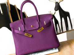 爱马仕铂金包尺寸有哪几种Hermes Birkin 25 Bag togoP9海葵紫 拼7T电光蓝