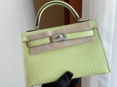 上海 Hermes Kelly Mini II 2代 R9 Jaune Bourgeon 嫩芽黄 雾面方块 美洲鳄鱼