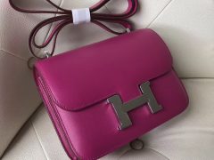 爱马仕空姐包 Hermes Constance 19cm Swift calfskin皮L3玫瑰紫Rose Purple 银扣