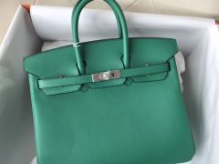 Hermes Birkin 25cm Bag 御用原厂Swift皮 U4丝绒绿 全手工蜡线缝 银扣